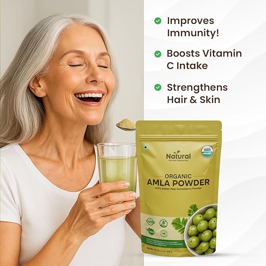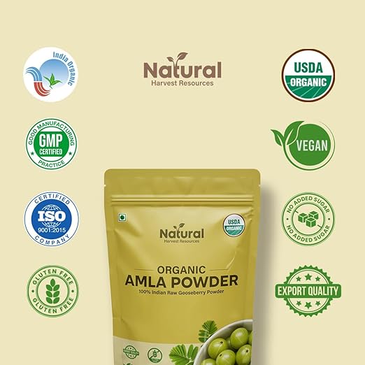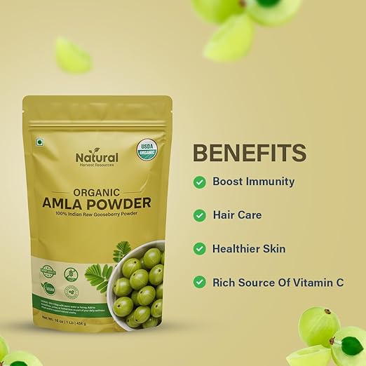 100% Organic & Pure Amla Powder (Indian Gooseberry)- Made from handpicked, sun-dried Amla fruits 100% pure, raw & USDA Organic Certified. No additives, preservatives, or fillers just nature’s true Vitamin C powerhouse.