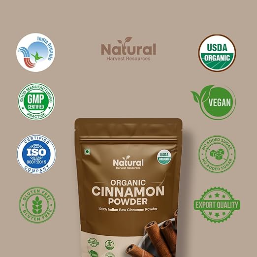 100% Pure & Natural Ceylon Cinnamon (Dalchini)- Experience authentic Indian Dalchini finely ground from premium Ceylon cinnamon sticks. 100% raw, natural, and USDA Certified Organic for purity, flavour, and trust.