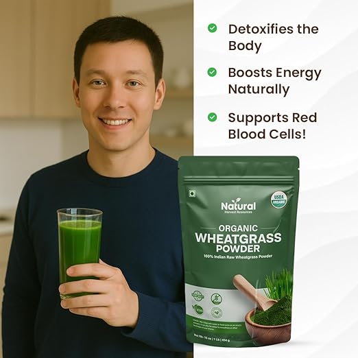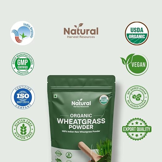 Clean, Safe & Certified Organic – USDA Certified, Non-GMO, Vegan & Gluten-Free wheatgrass powder. No artificial colour, sugar, or preservatives – only 100% natural nutrition you can trust every scoop of.
