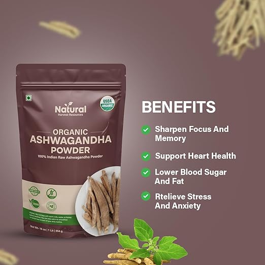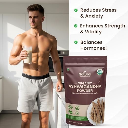 100% Pure & USDA Organic Ashwagandha – Made from hand-harvested Withania Somnifera roots, our powder is USDA Organic, Non-GMO, and lab-tested to deliver authentic Indian Ashwagandha with maximum purity and potency.
