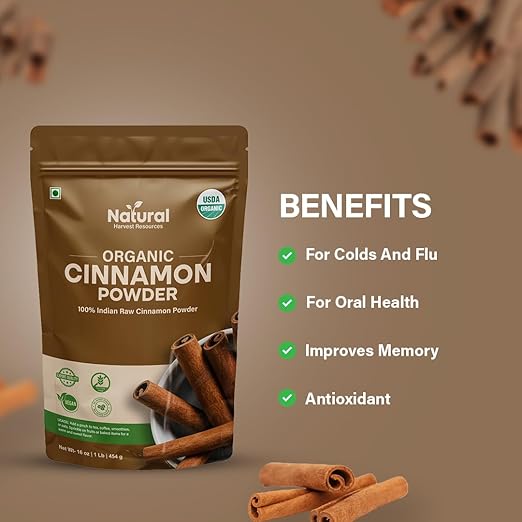 100% Pure & Natural Ceylon Cinnamon (Dalchini)- Experience authentic Indian Dalchini finely ground from premium Ceylon cinnamon sticks. 100% raw, natural, and USDA Certified Organic for purity, flavour, and trust.