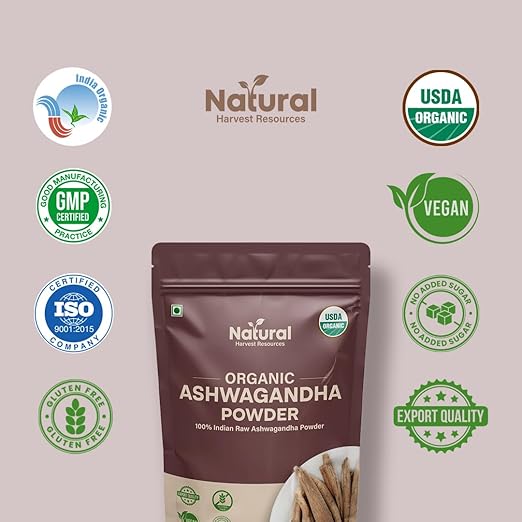 100% Pure & USDA Organic Ashwagandha – Made from hand-harvested Withania Somnifera roots, our powder is USDA Organic, Non-GMO, and lab-tested to deliver authentic Indian Ashwagandha with maximum purity and potency.